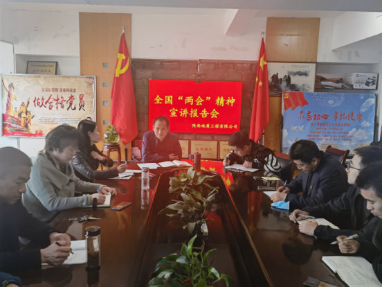 為深入學(xué)習(xí)宣傳全國兩會(huì)精神,推動(dòng)在公司迅速掀起學(xué)習(xí)宣傳貫徹全國兩會(huì)精神的熱潮,根據(jù)省委部署、省國資委黨委和集團(tuán)公司黨委精神,4月7日,陜西地質(zhì)工程有限公司召開全國“兩會(huì)”精神宣講報(bào)告會(huì)。